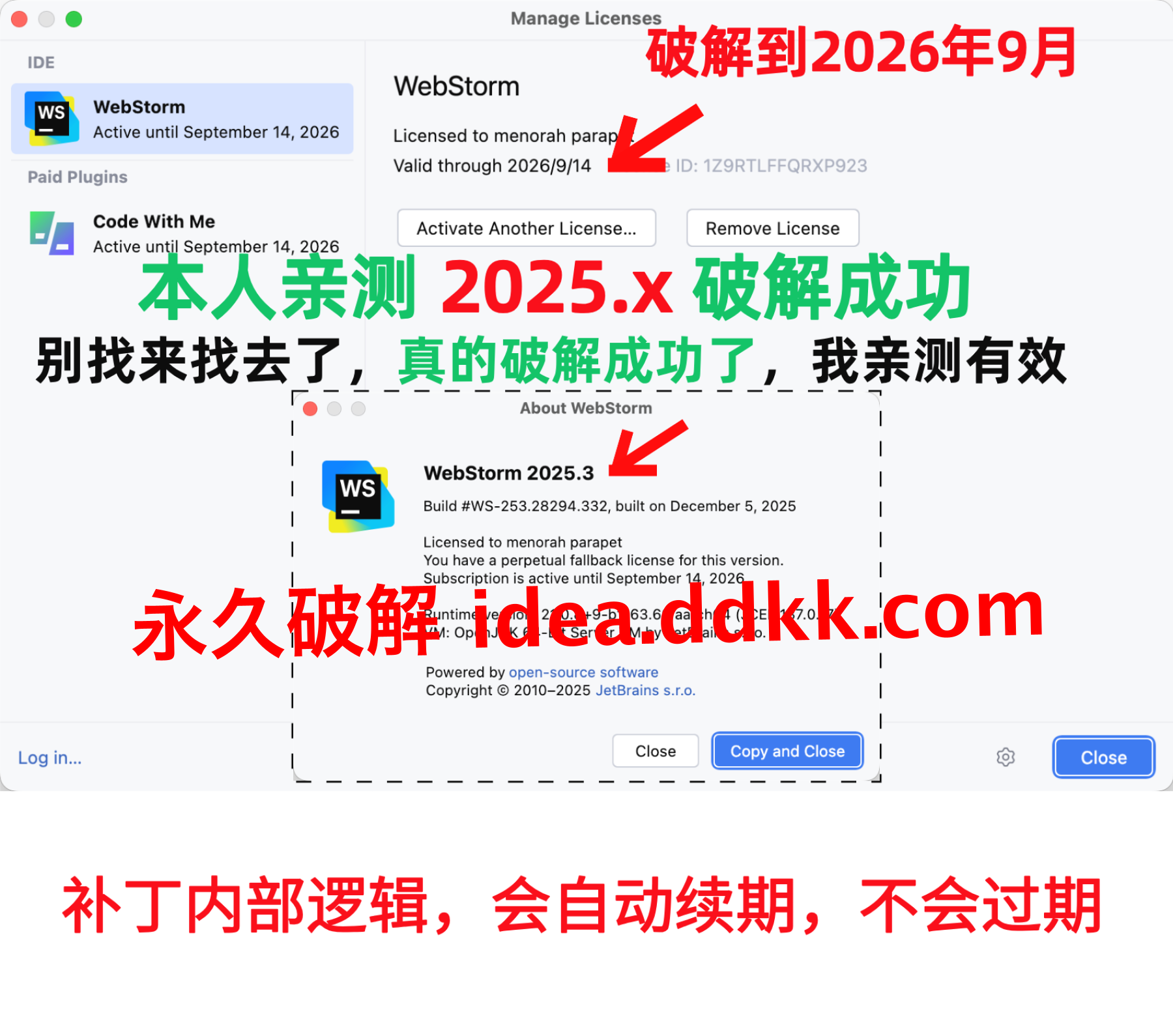 WebStorm 2025.3破解补丁,不要移动位置,不要删除【否则破解失败】