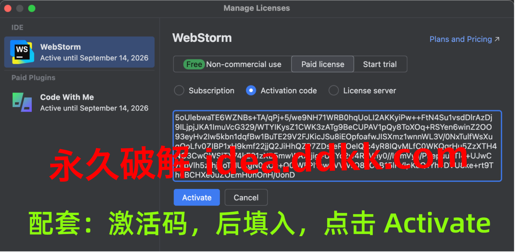 重点来了,别搞错了。每个JetBrains产品对应的激活码都不一样,WebStorm有WebStorm的激活码,IDEA有IDEA的激活码,别混了。记得仔细核对一下,别填错了。这步很关键,一定要注意产品之间的区别,别填错激活码。