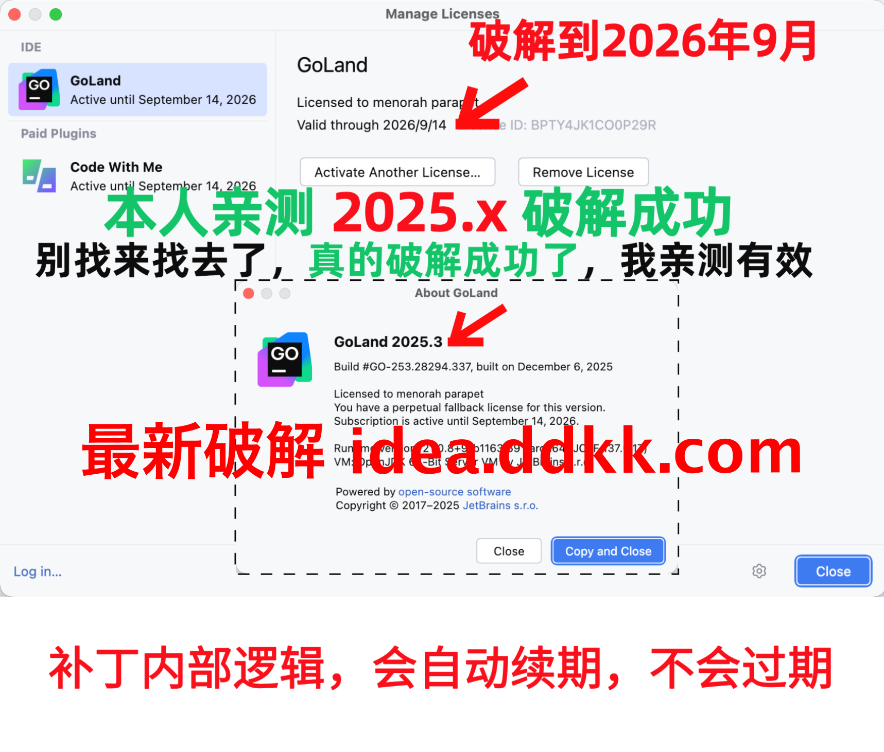 GoLand 2025.3 破解补丁,不要移动位置,不要删除【否则破解失败】