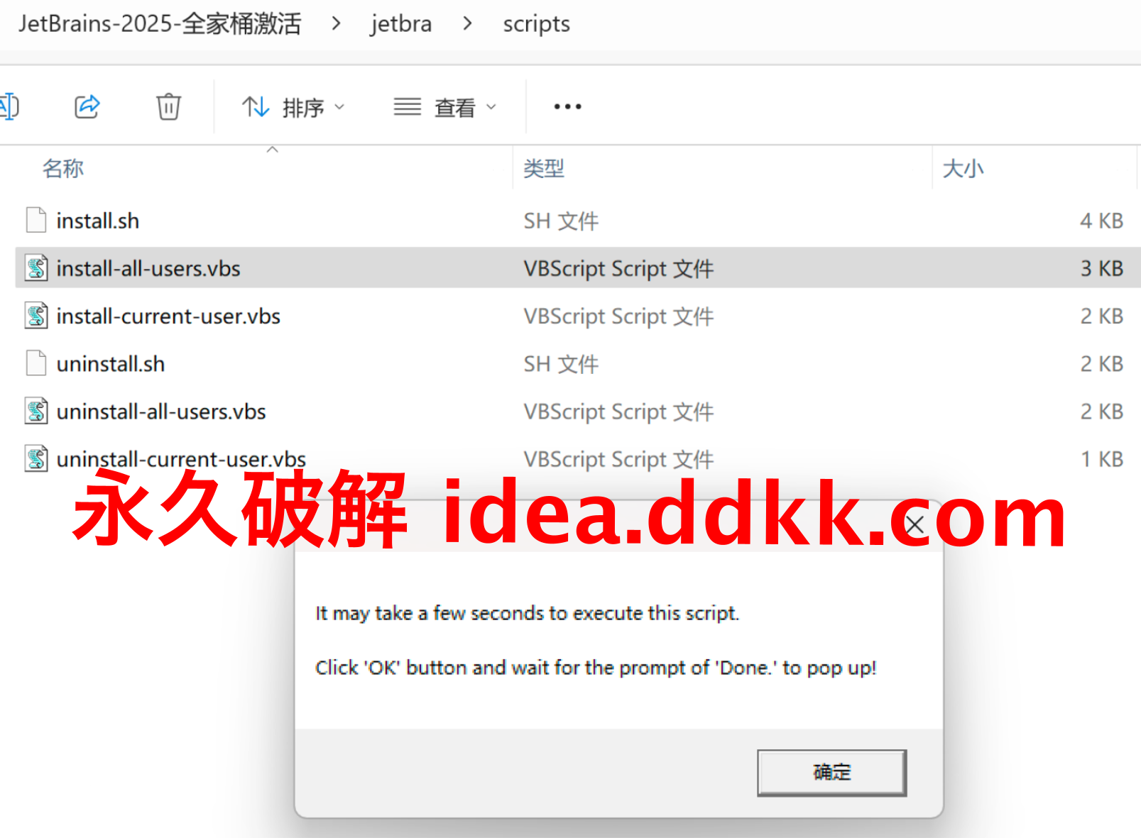 这个补丁包结构很清晰,scripts文件夹里放的是安装脚本,Windows用vbs文件,Mac和Linux用sh文件。脚本会自动帮你配置vmoptions文件,不用手动改,对小白来说很友好。