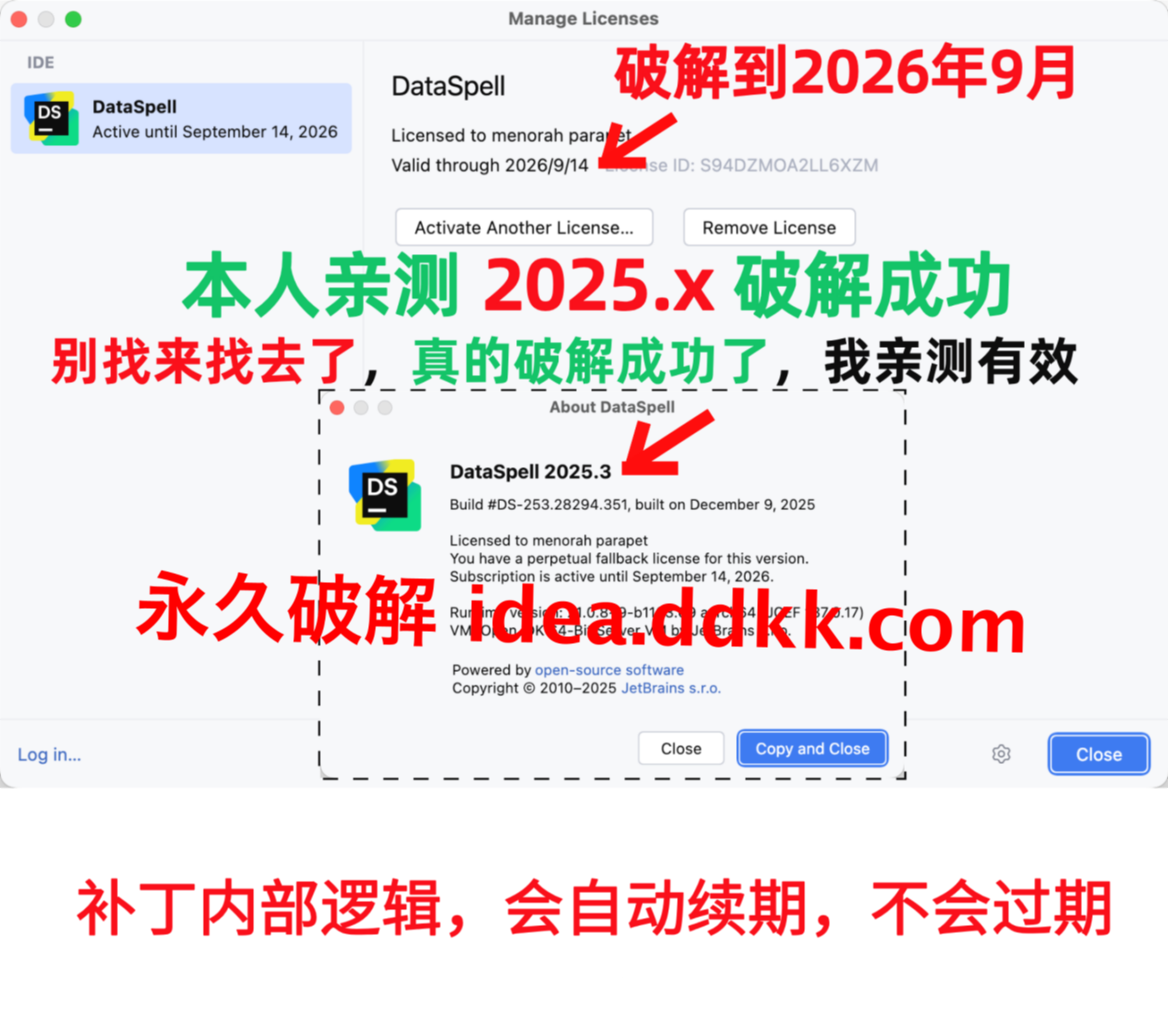 DataSpell 2025.3 破解补丁,不要移动位置,不要删除【否则破解失败】