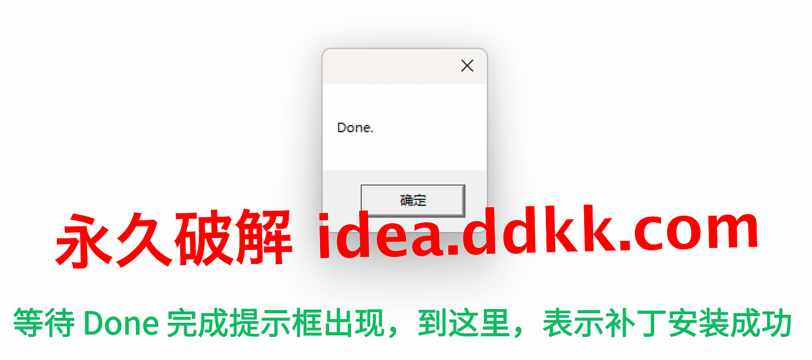 提示框会告诉你补丁安装大概需要几秒到一分钟,点确定之后,等着 Done 这个完成提示框弹出来,看到这个就说明补丁装好了。