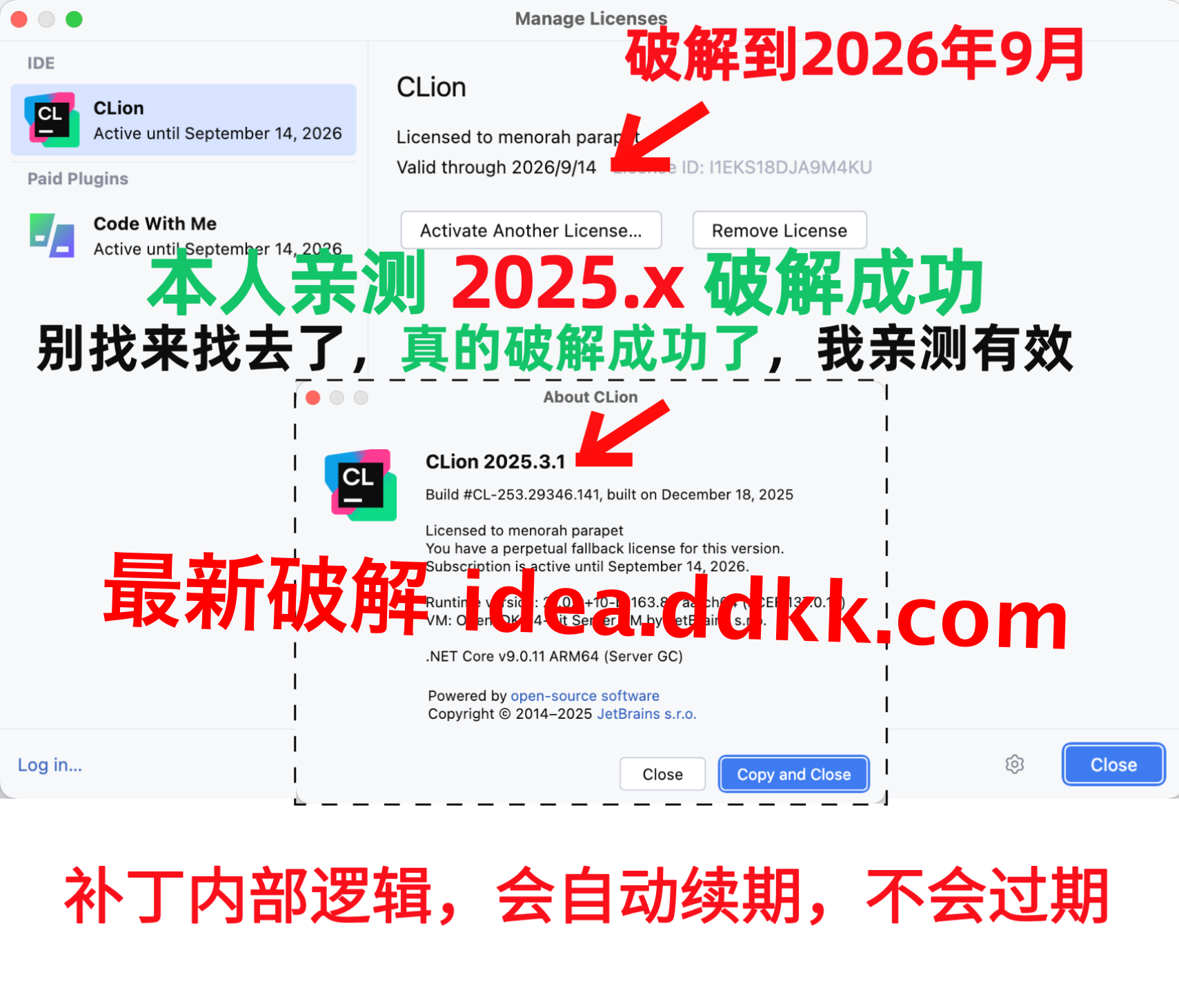 CLion 2025.3.1 破解补丁,不要移动位置,不要删除【否则破解失败】