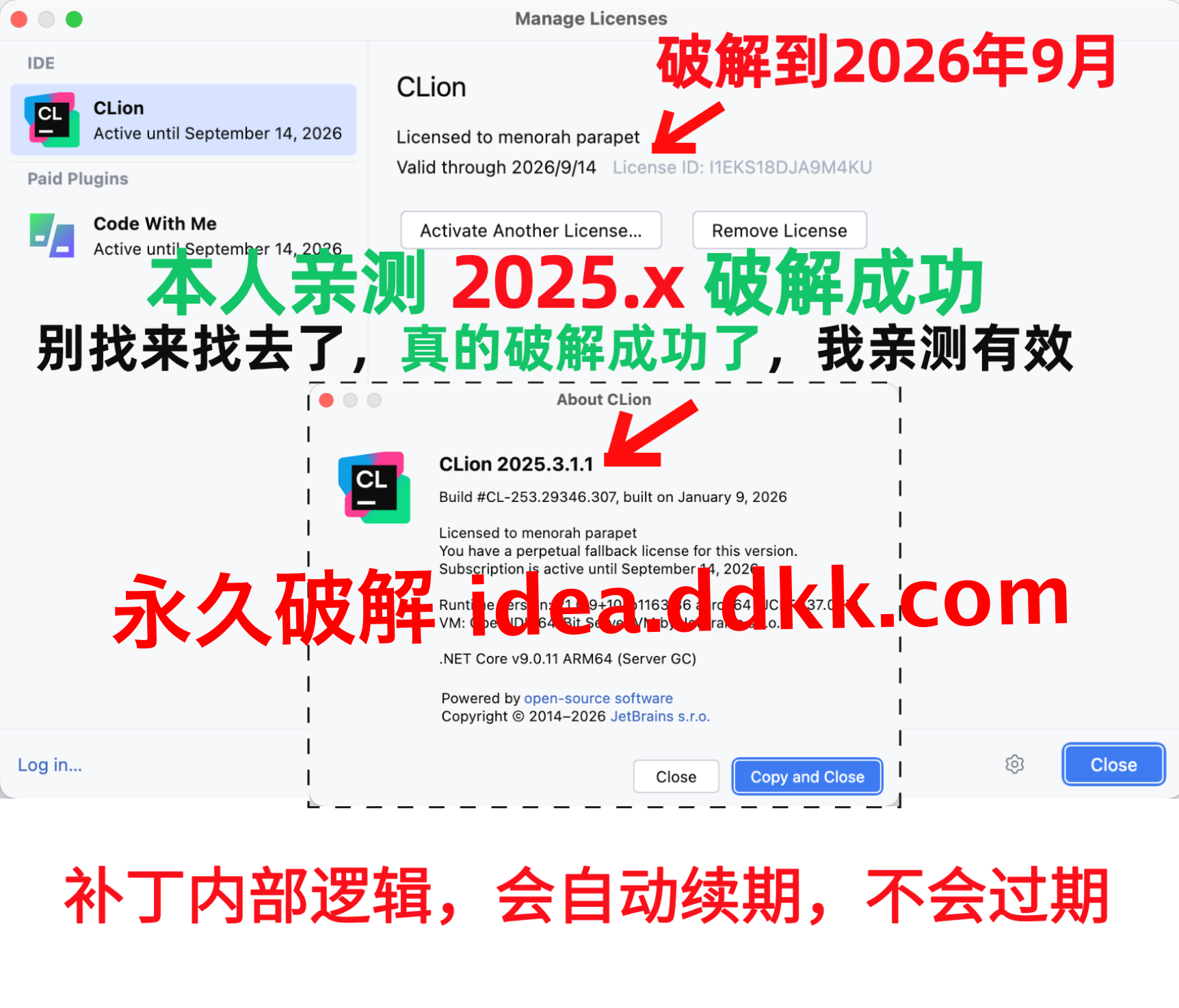 CLion 2025.3.2 破解补丁安装成功后不要移动位置也不要删除,否则破解会失效