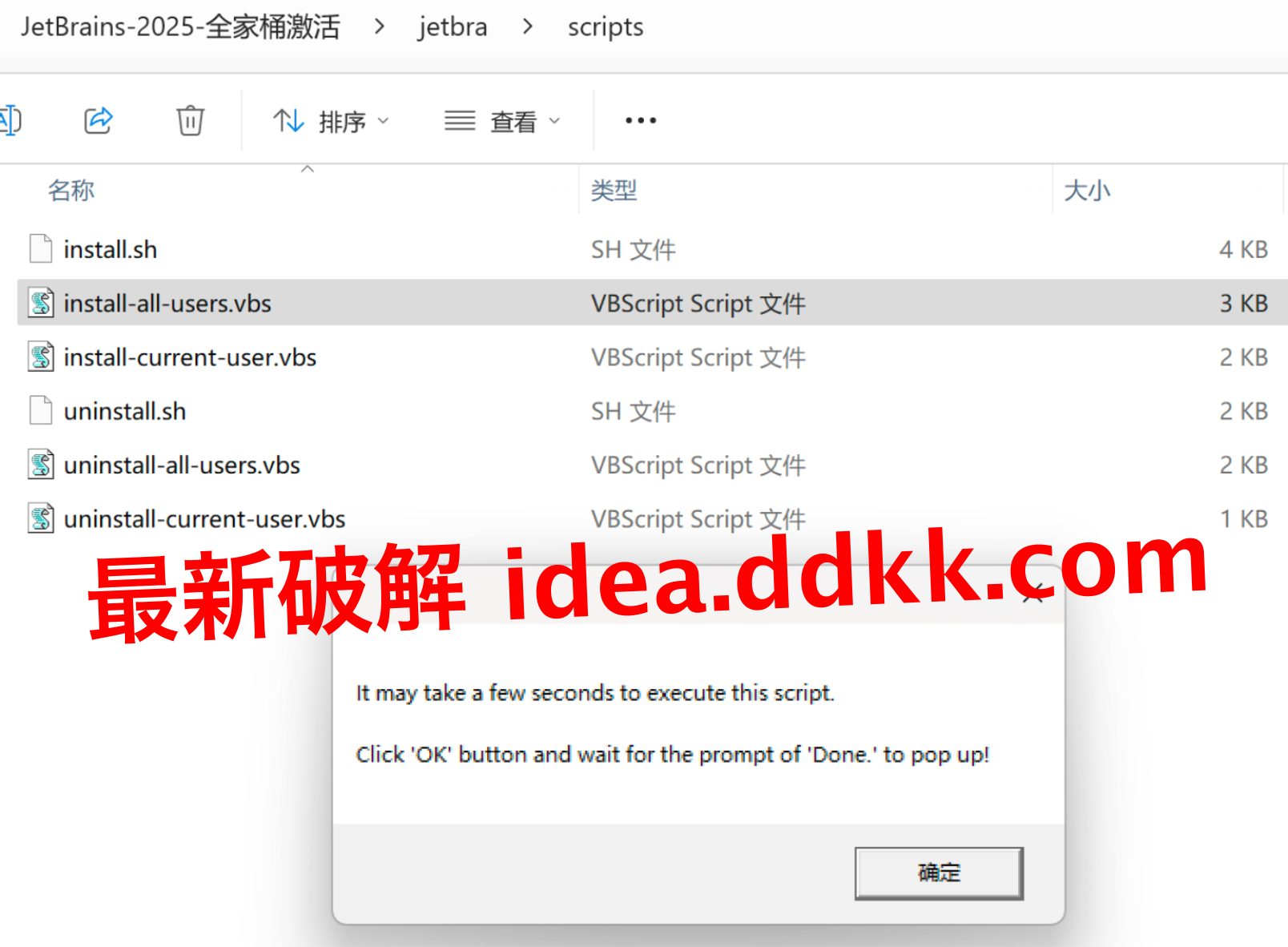看到没,这就是补丁包的文件夹结构。打开文件夹,你会看到有个scripts文件夹,这里面放的都是各种脚本文件。Windows、Mac、Linux三个系统的脚本都有,你根据自己的系统选对应的就行。Windows选.vbs文件,Mac和Linux选.sh文件。