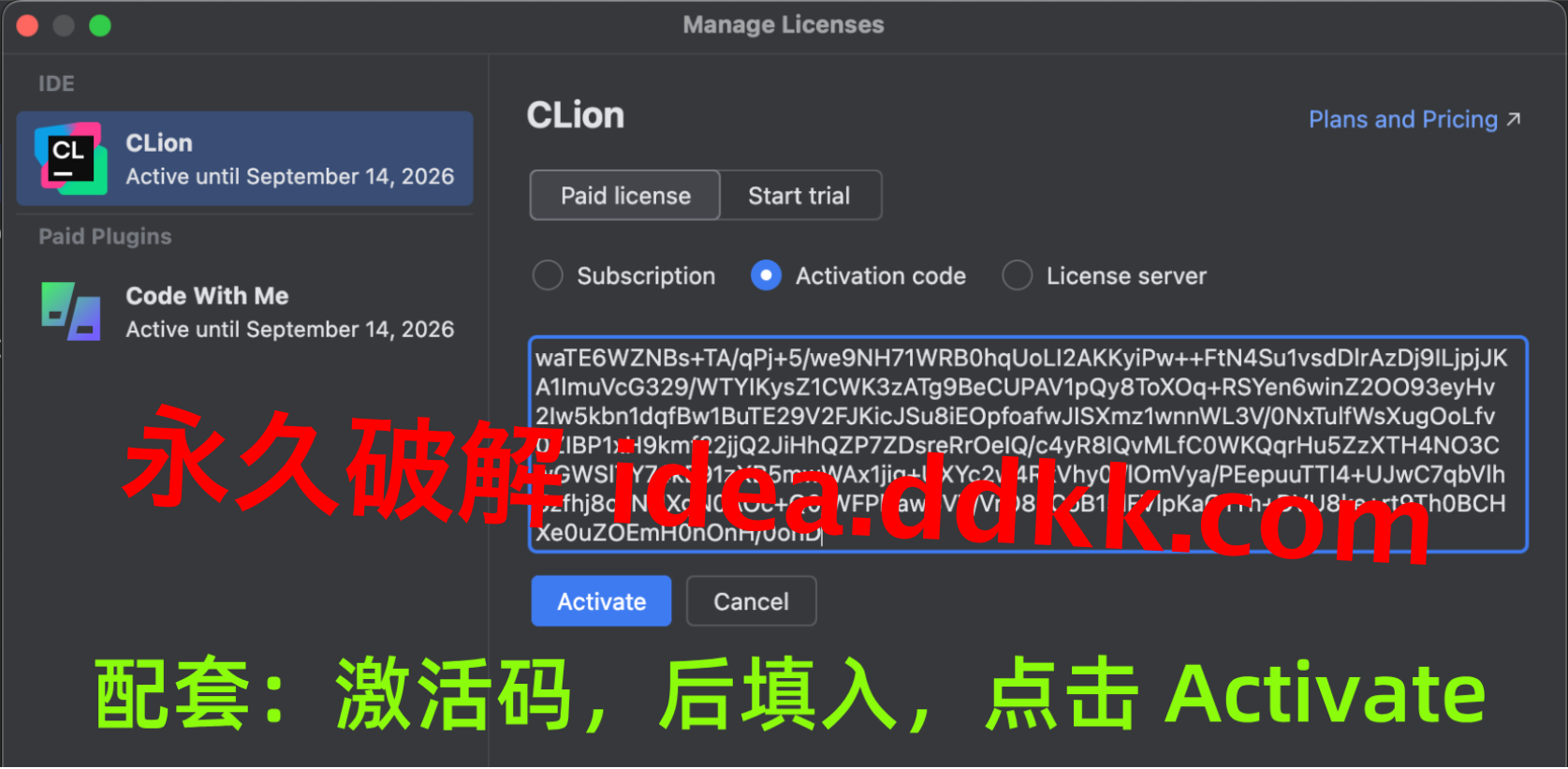 补丁装好了,接下来就是激活码的事情了。注意,Jetbrains每个产品对应的激活码都不一样,别搞混了。