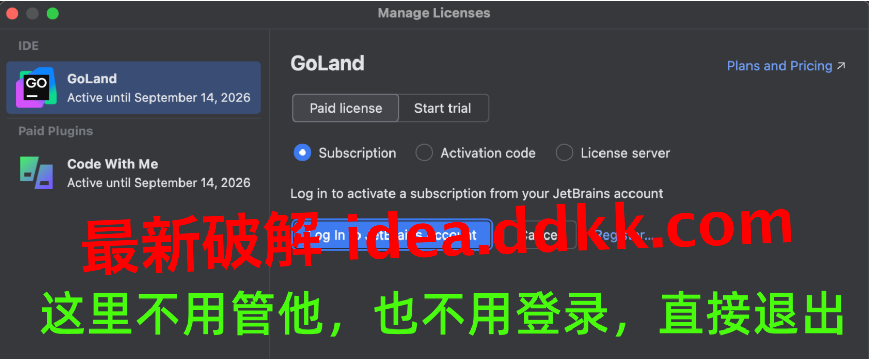 DataGrip启动后会弹出登录对话框,提示你登录JetBrains账号