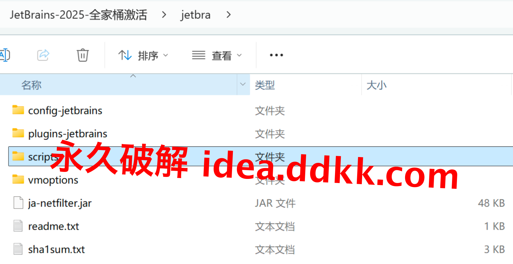 解压完补丁包,你打开文件夹会看到scripts这个文件夹,里面装的是各种系统的安装脚本,Windows用vbs文件,Mac和Linux用sh文件,这些脚本会自动帮你把破解补丁的路径写到datagrip.vmoptions配置文件里,省得你手动去改,对新手来说,这设计确实友好,不用你一个个文件去找
