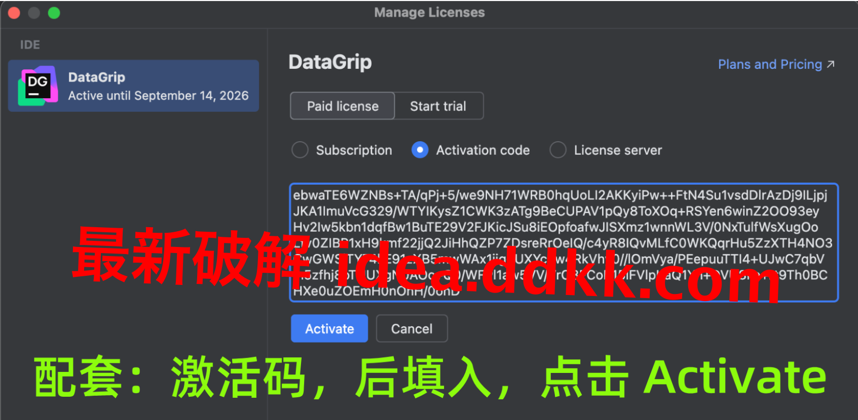我鹏磊提醒你,DataGrip的激活码跟其他JetBrains产品不一样,你得用DataGrip专用的激活码,上面那个链接里有所有产品的激活码,你找到DataGrip那一行,复制对应的激活码就行,这激活码每个产品都不一样,别搞混了