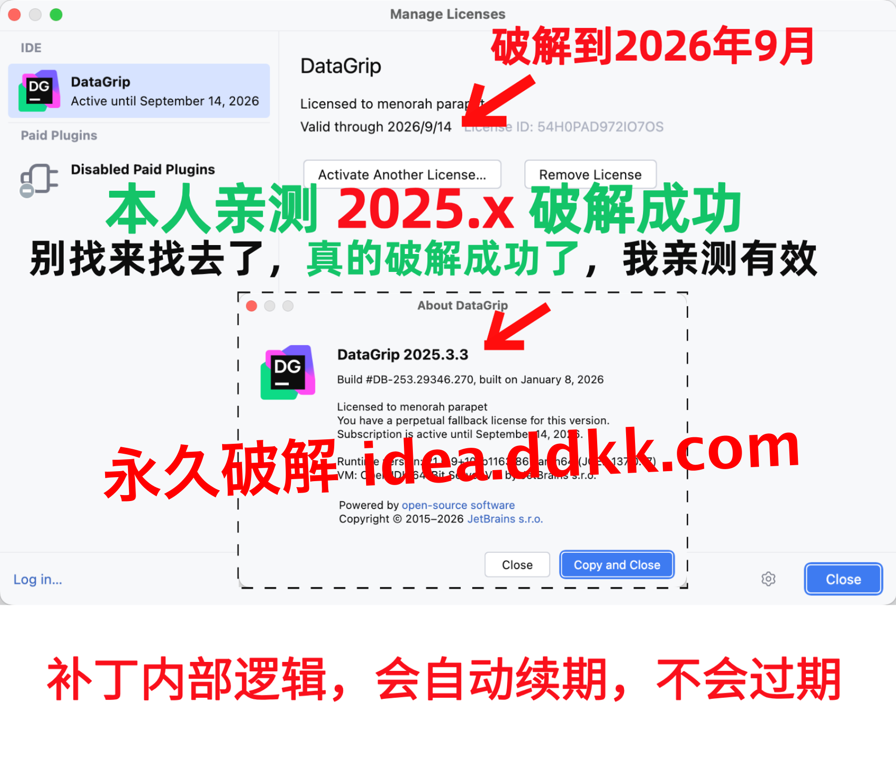 DataGrip 2025.3.4破解补丁安装成功后,补丁文件的位置千万别移动,也不要删除,否则破解会失效