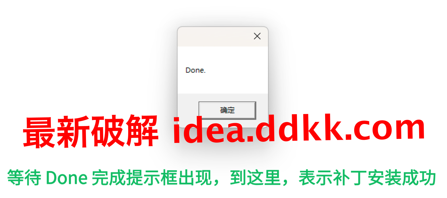 点确定,然后耐心等着就行。别手快,等它跑完。整个过程很快,一般不会超过一分钟。等看到Done完成提示框弹出来,就说明补丁安装成功了。这个提示框就是安装成功的标志。