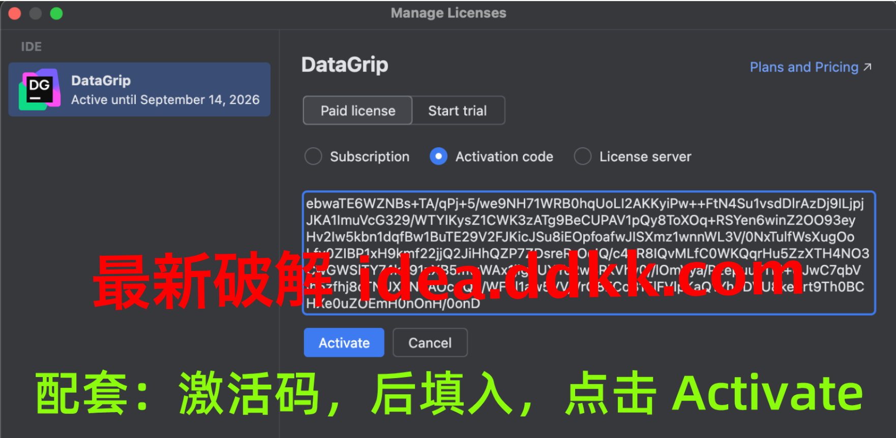 Jetbrains每个产品对应的激活码都不一样,DataGrip有专门的激活码,别搞混了