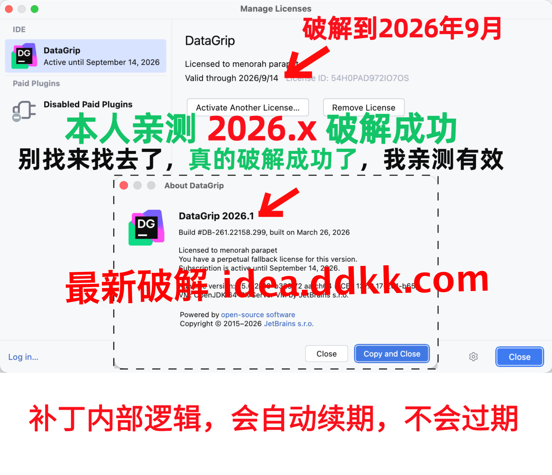 DataGrip 2026.1 破解补丁,不要移动位置,不要删除【否则破解失败】