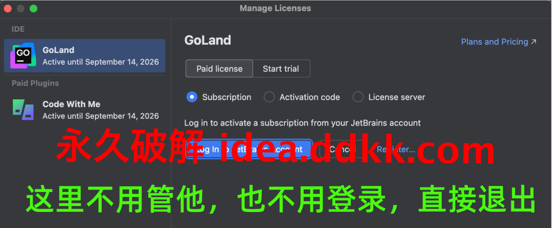 装完第一次打开,JetBrains 弹登录框,要账号: