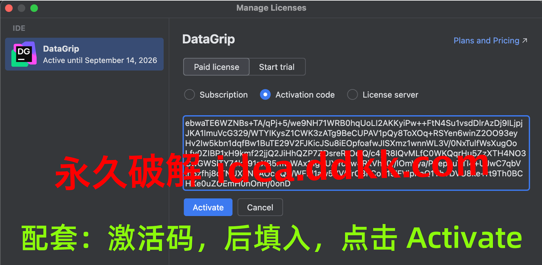 重启 DataGrip,激活界面,填码。