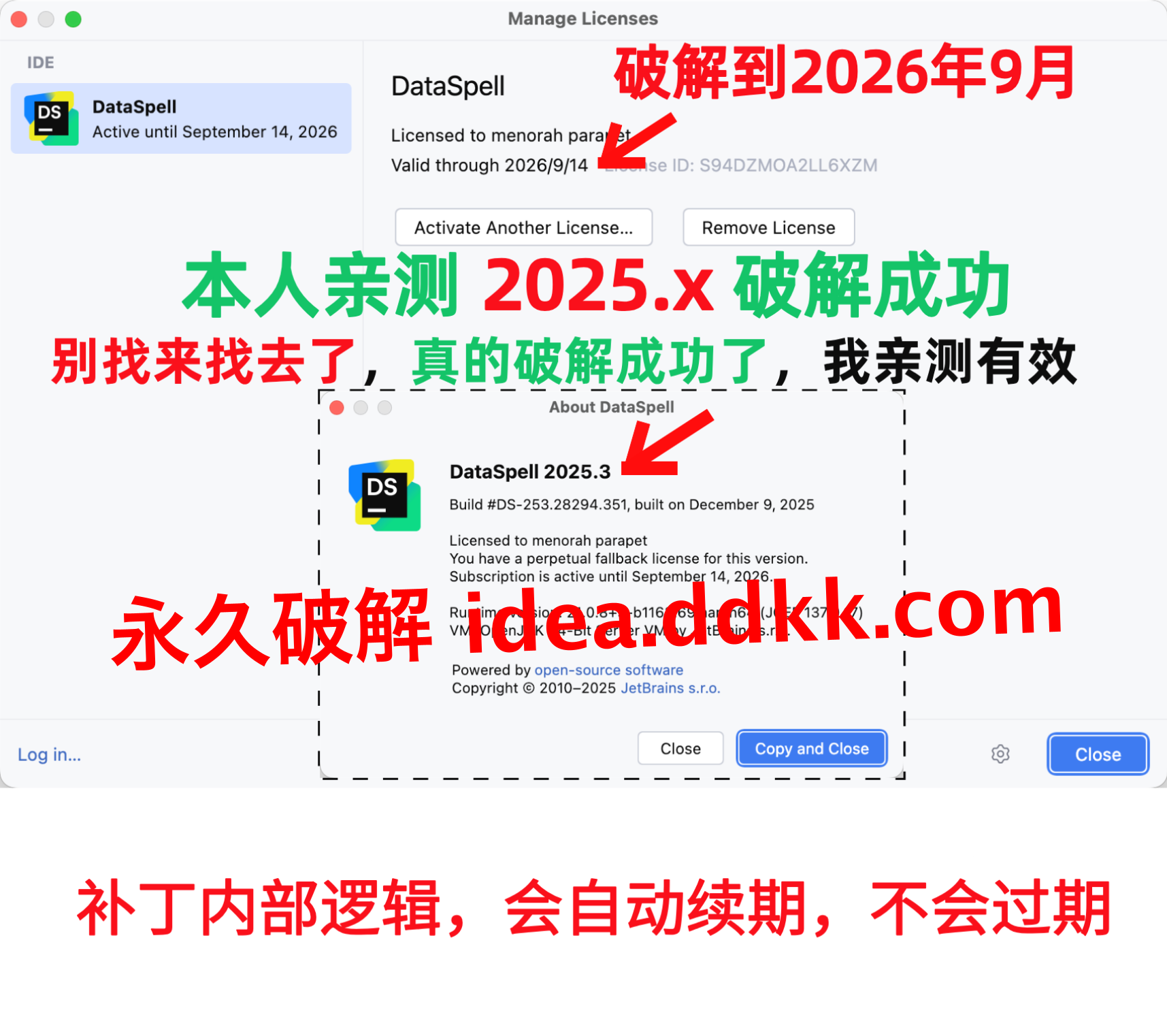 DataSpell 2025.3破解补丁,千万别移动位置,也别删除【不然破解就失效了】