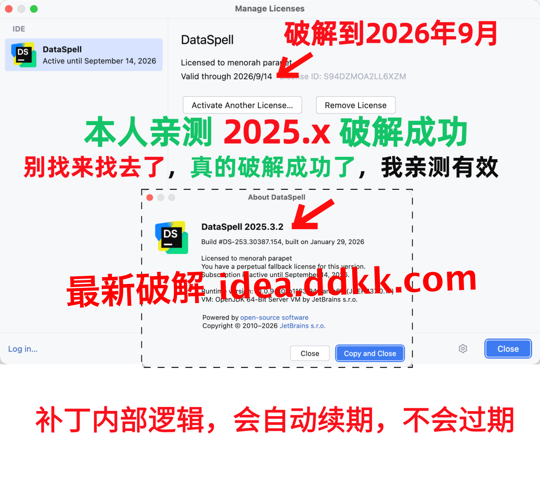 DataSpell 2025.3.2 破解补丁,不要移动位置,不要删除【否则破解失败】