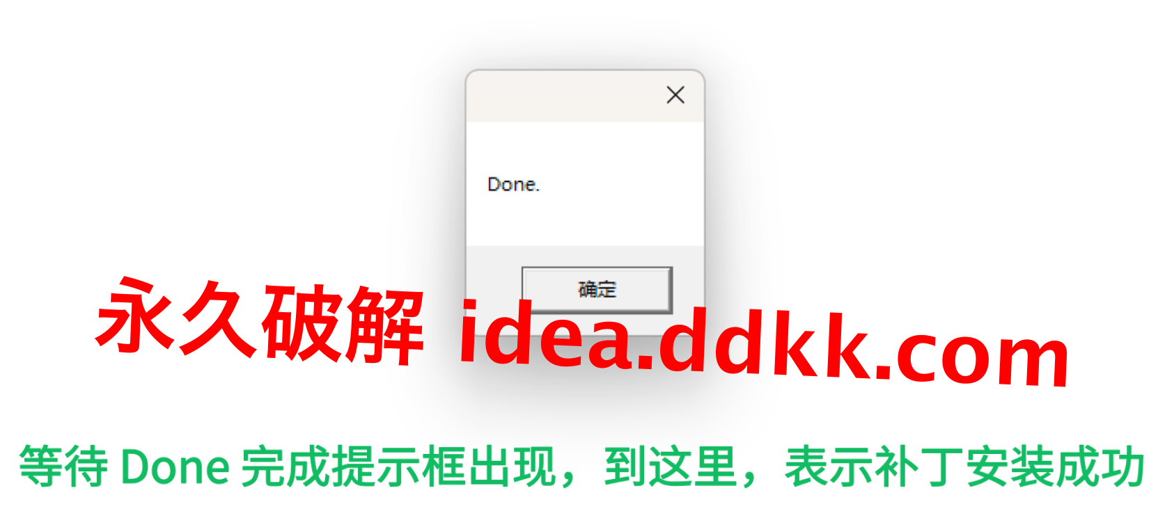 看到Done那个框弹出来,点确定关掉,补丁这边已经写进vmoptions了,DataSpell下次启动会自动带着它跑。