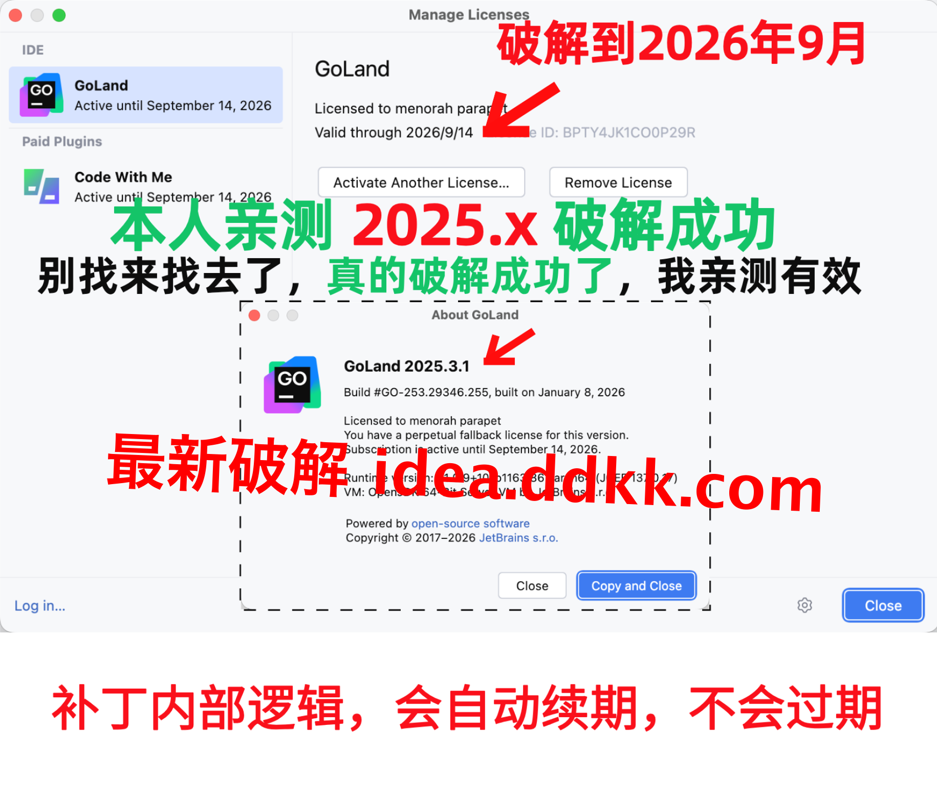 GoLand 2025.3.1 破解补丁,不要移动位置,不要删除【否则破解失败】