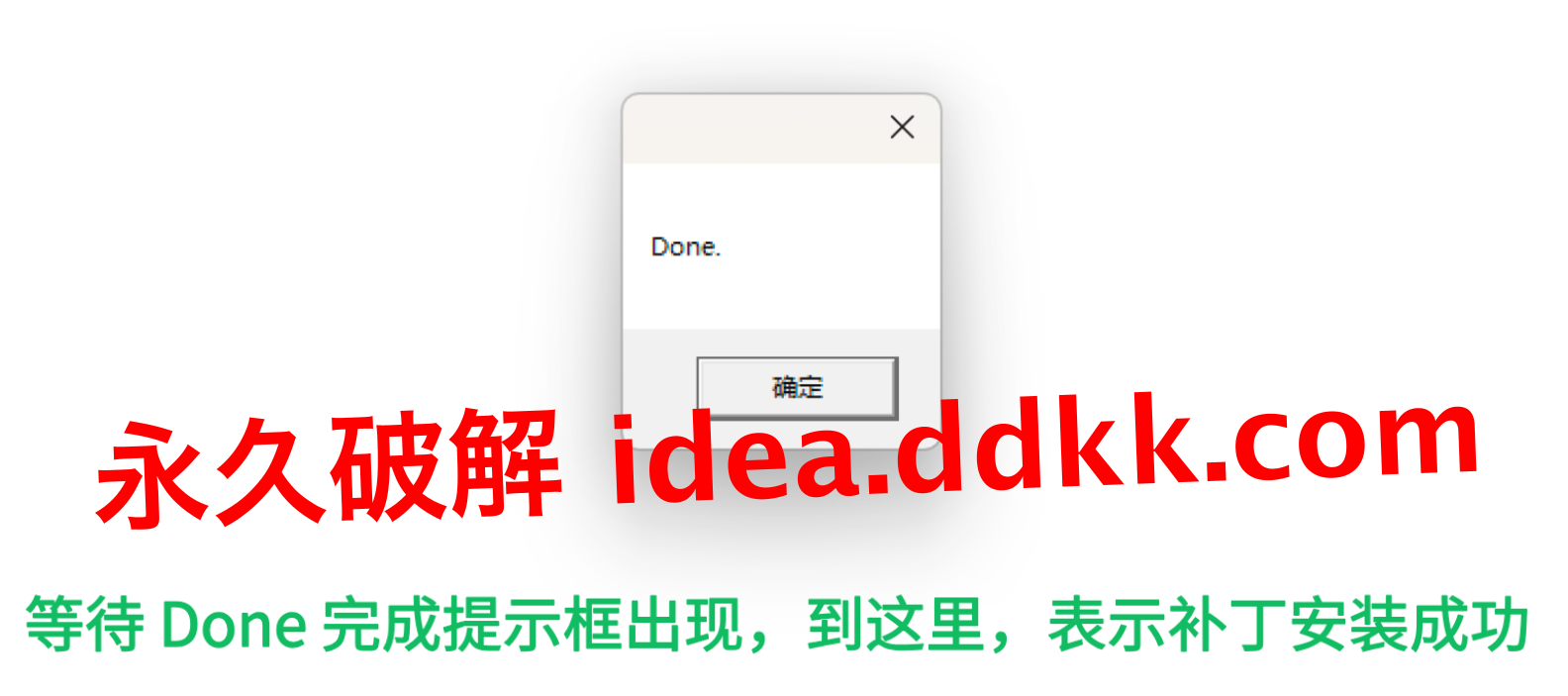 点确定,然后等着Done那个完成提示框弹出来。看到Done提示框,说明补丁已经装好了,可以继续下一步了。这个提示框出现,就说明补丁已经成功安装到goland.vmoptions文件里了。