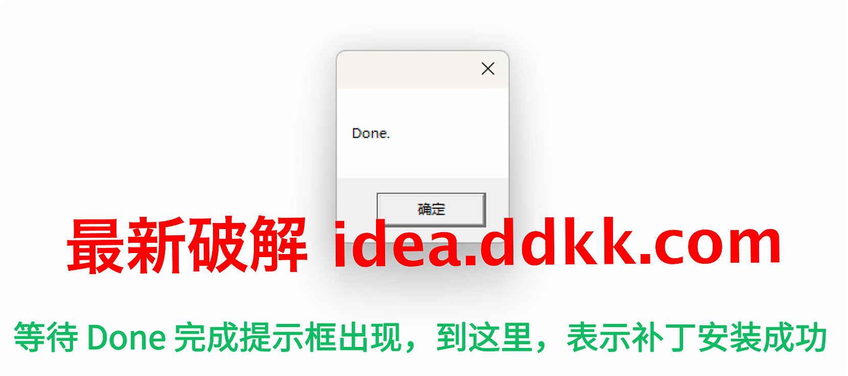 等到 Done 这个弹窗出现,这就是告诉你补丁装完了,点确定关掉就行。没弹 Done、只弹了个 Error 或者什么都没出现,那就说明出问题了,大概率是路径不对,回去检查一遍路径里有没有中文或者空格。