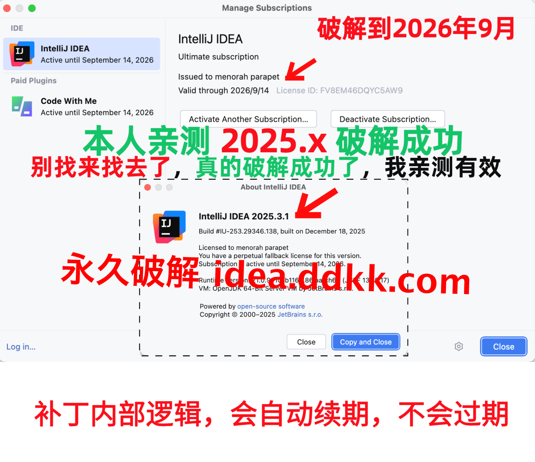 IDEA 2025.3.1 破解补丁,别乱动位置,别删文件【不然破解就失效了】