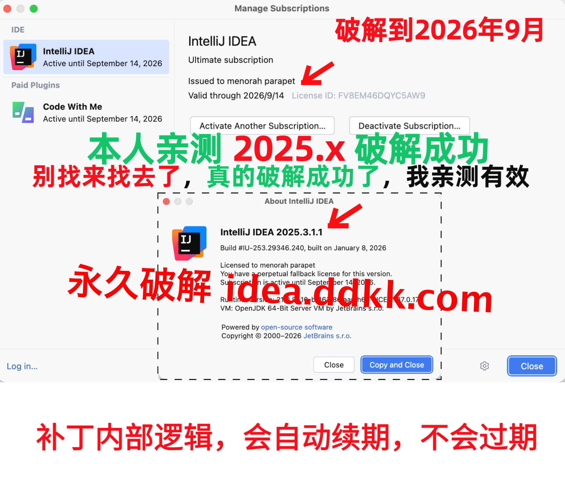 IDEA 2025.3.1.1 破解补丁,不要移动位置,不要删除【否则破解失败】
