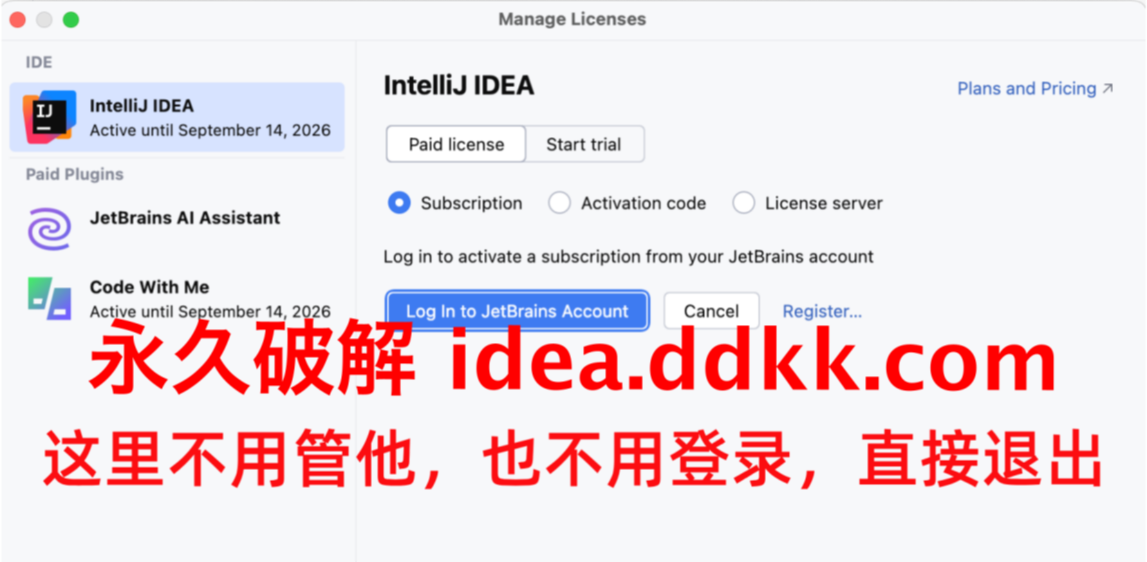 Jetbrains 每个产品,对应激活码都不一样
