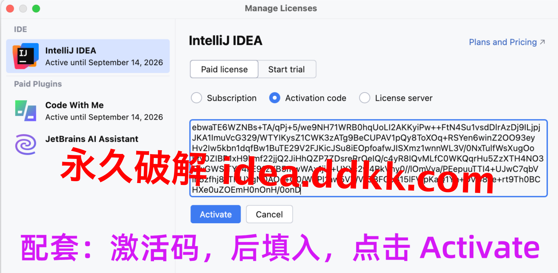 打开IDEA,找到激活那个选项,选激活码方式,然后把对应的激活码粘贴进去。激活码通常都很长一串,复制的时候小心点,别漏了字符,也别多复制了空格进去。