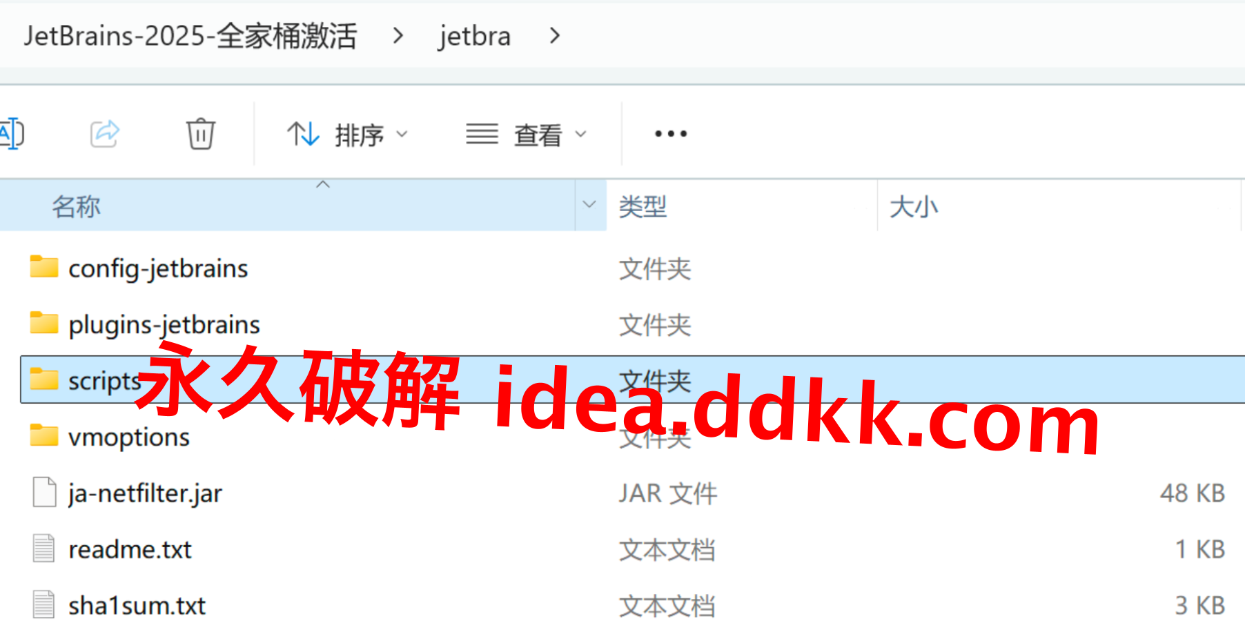 jetbra文件夹位置确认好了,现在进scripts文件夹,找到对应你系统的那个脚本跑起来。