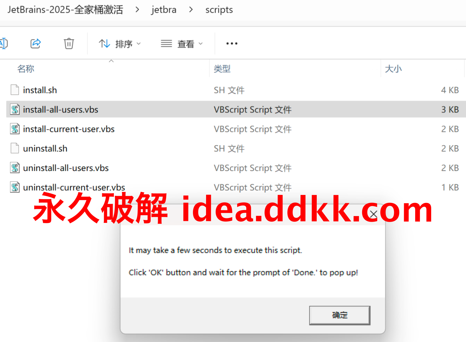 有人反馈说脚本跑完没有任何反应,窗口直接消失了,这种情况基本就是路径问题——jetbra文件夹的位置包含了中文或者空格,脚本找不到目标文件,静默失败了。重新把文件夹挪到纯英文路径,再跑一遍脚本,Done就出来了。