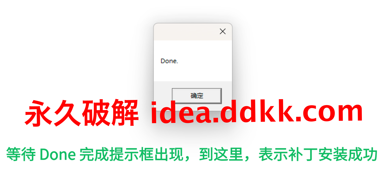 第一个弹窗是告诉你预计耗时,点确定就行,然后等Done。Done出来了代表补丁写进去了,整个安装过程结束,点确定关掉。