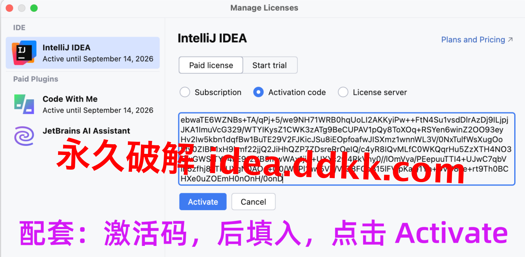 填之前说一句:JetBrains家的产品,每个对应的激活码都不一样,IDEA有IDEA的码,PyCharm有PyCharm的码,别搞混了。