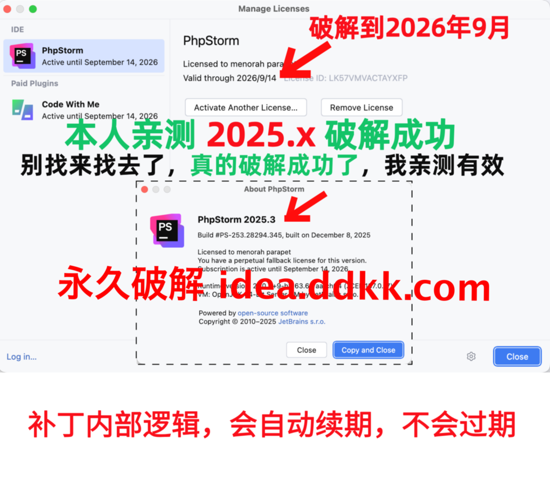 PhpStorm 2025.3 破解补丁,不要移动位置,不要删除【否则破解失败】