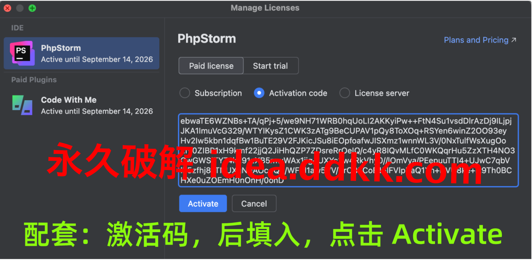 补丁落地了,重新打开 PhpStorm,这回不点 Exit,在激活界面输激活码。