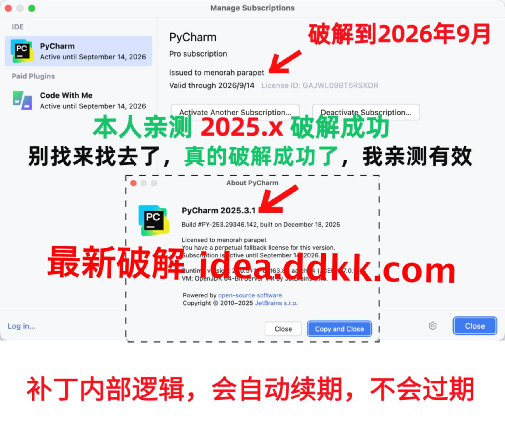 PyCharm 2025.3.1 破解补丁,不要移动位置,不要删除【否则破解失败】
