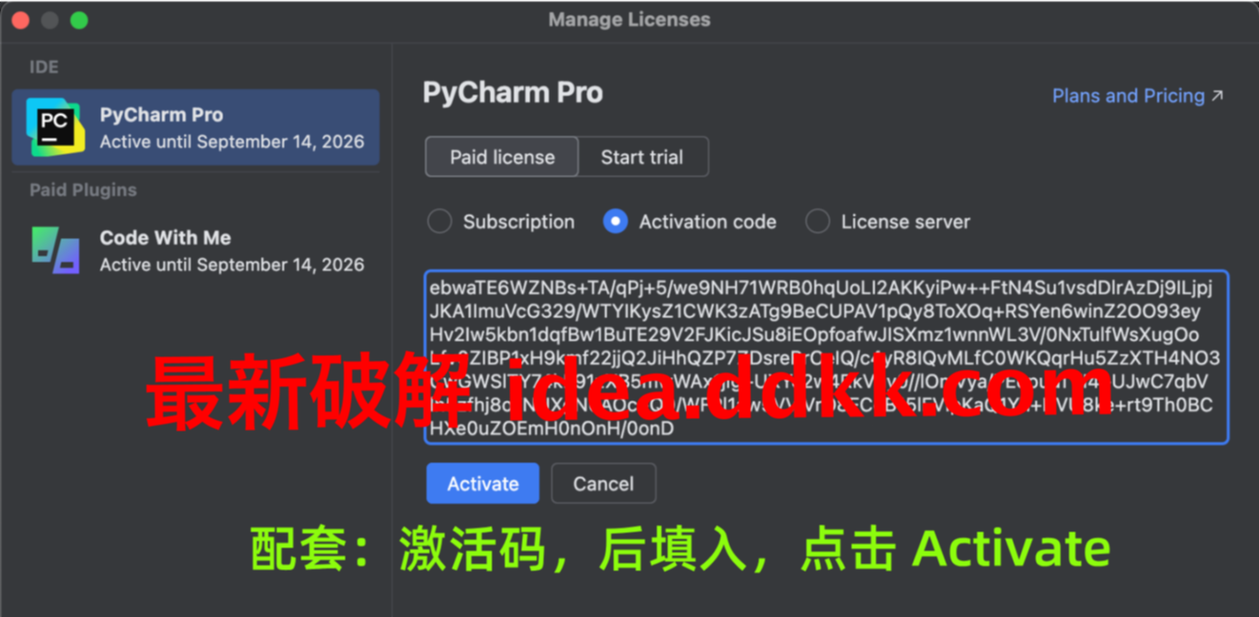 现在把PyCharm重新打开,激活码往里一糊,点激活;屏幕上就显示成功信息
