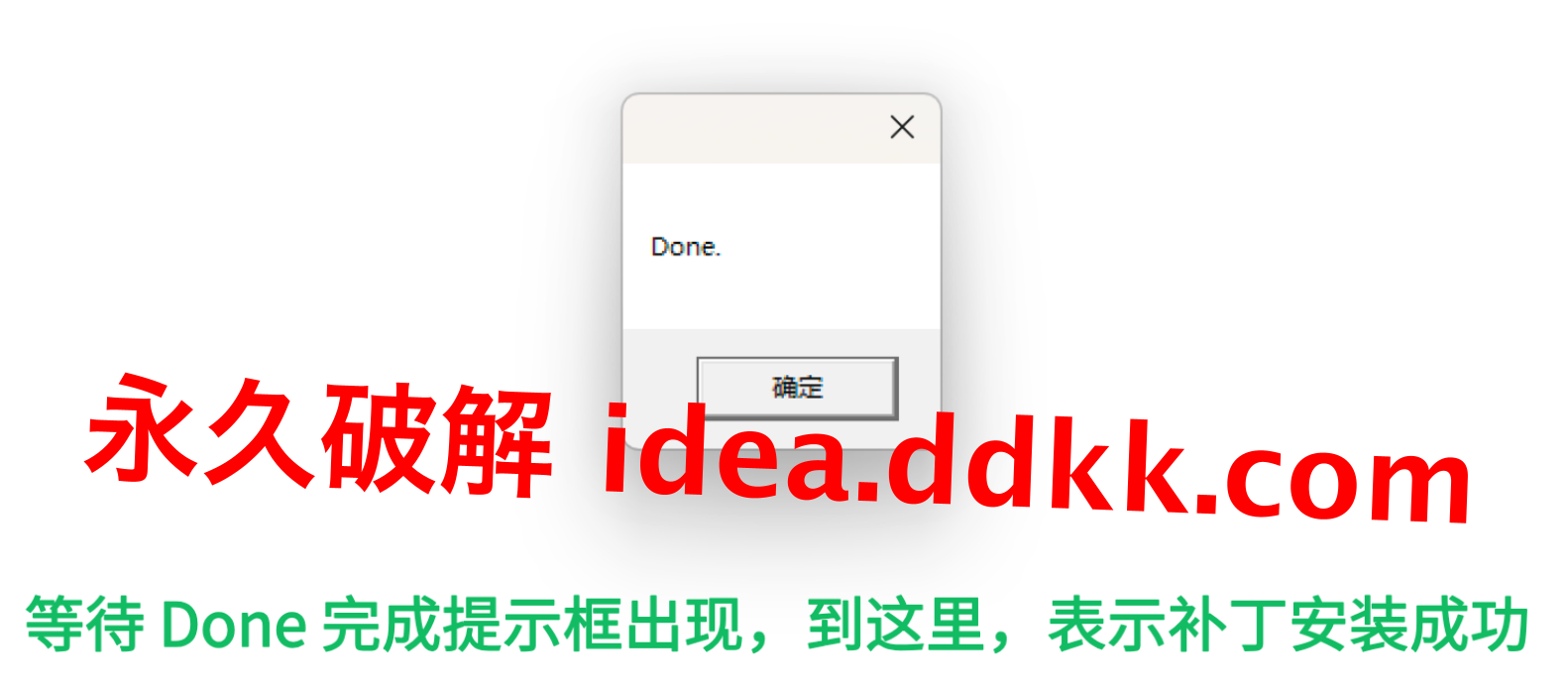 等一个写着 Done 的小提示框浮出来。这个框是补丁写入完成的信号,没出来之前别提前关窗口,出来了才是真正装好了。