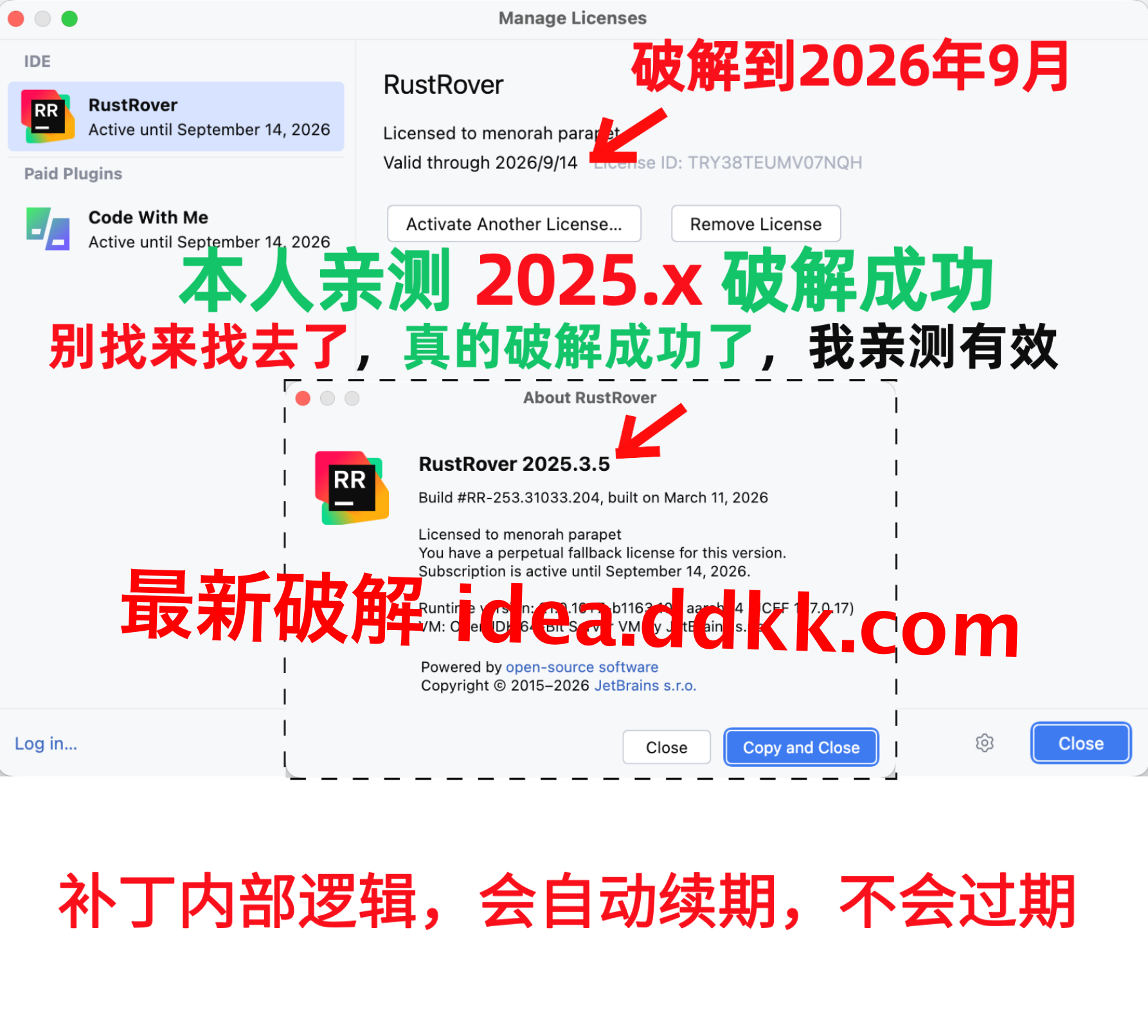RustRover 2025.3.5 破解补丁,不要移动位置,不要删除【否则破解失败】