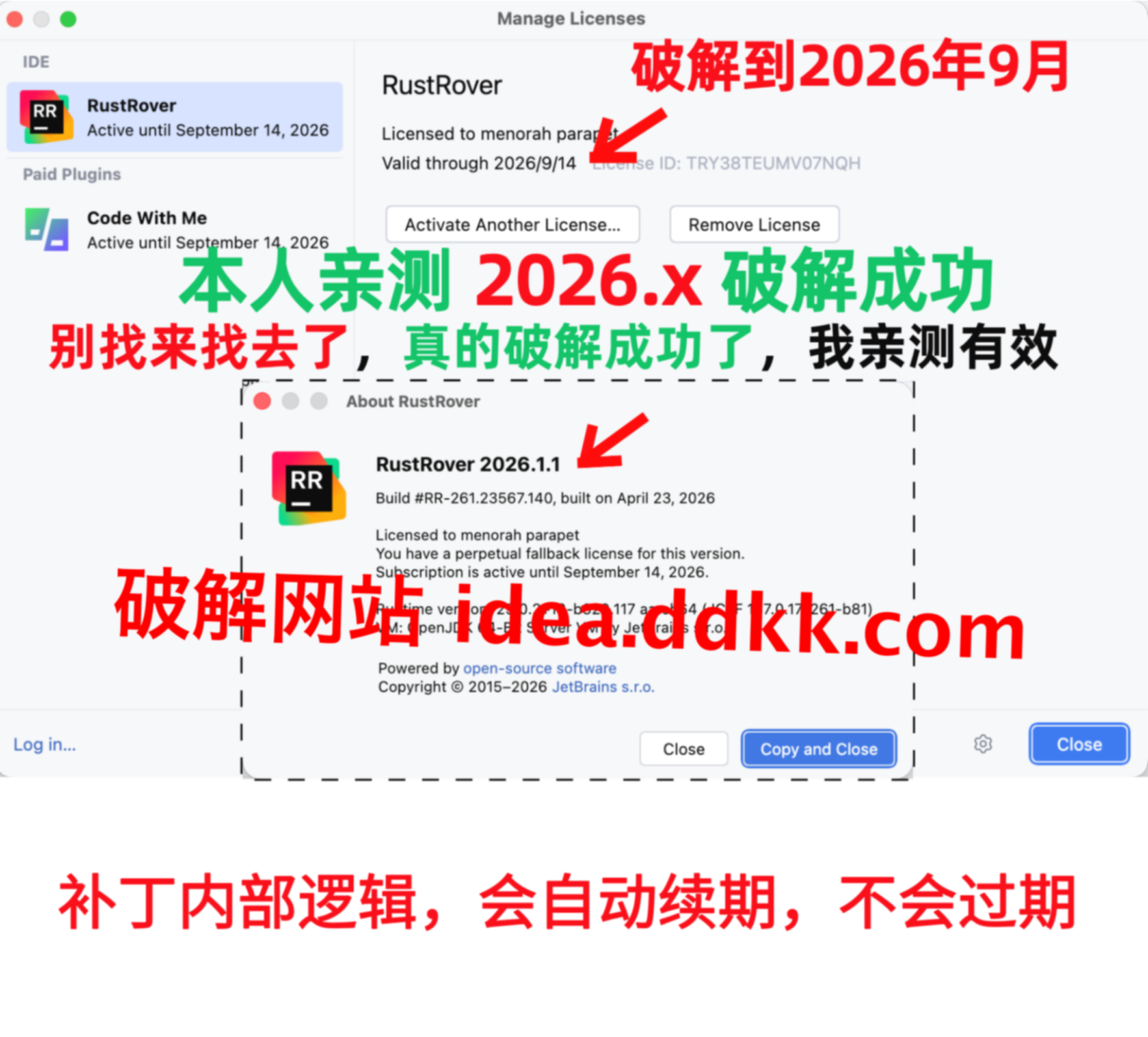 RustRover 2026.1.1 破解补丁,不要移动位置,不要删除【否则破解失败】
