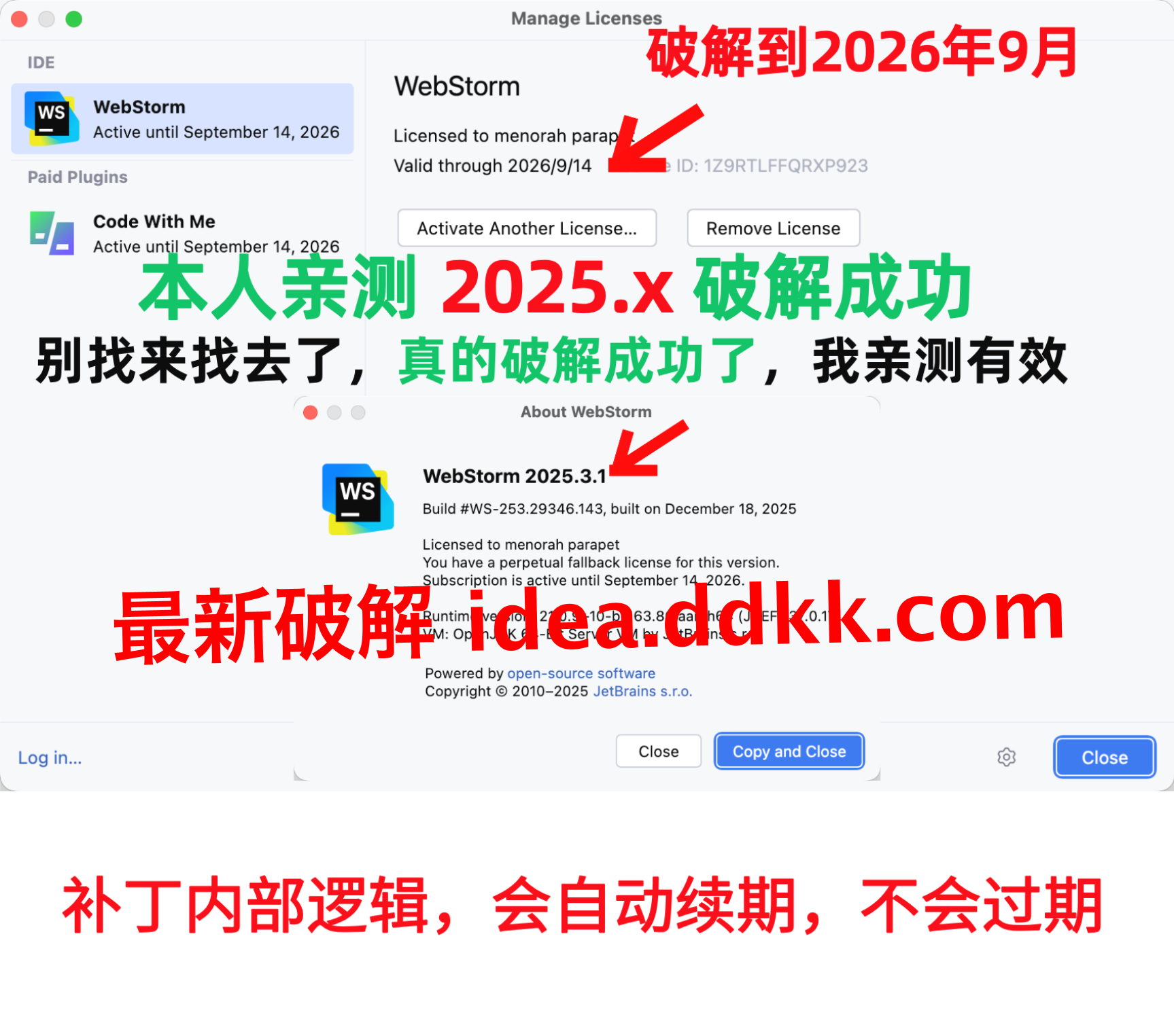 WebStorm 2025.3.1 破解补丁,位置别动,文件别删【否则破解失败】